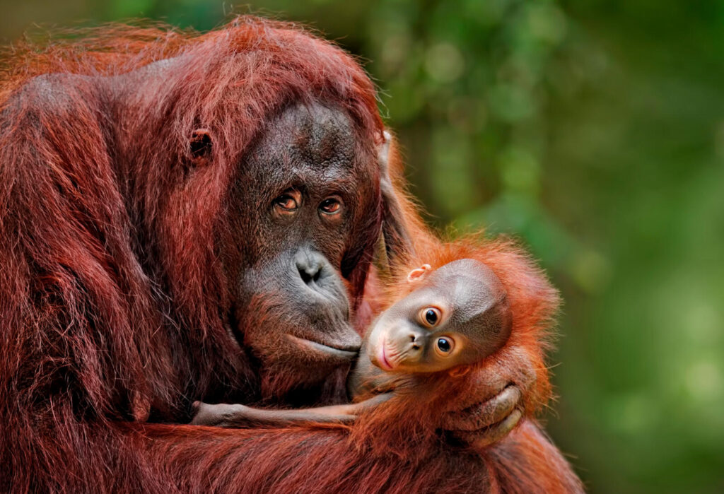 Orangutans like these have the most intense mother-child relationship of any primate besides humans.
