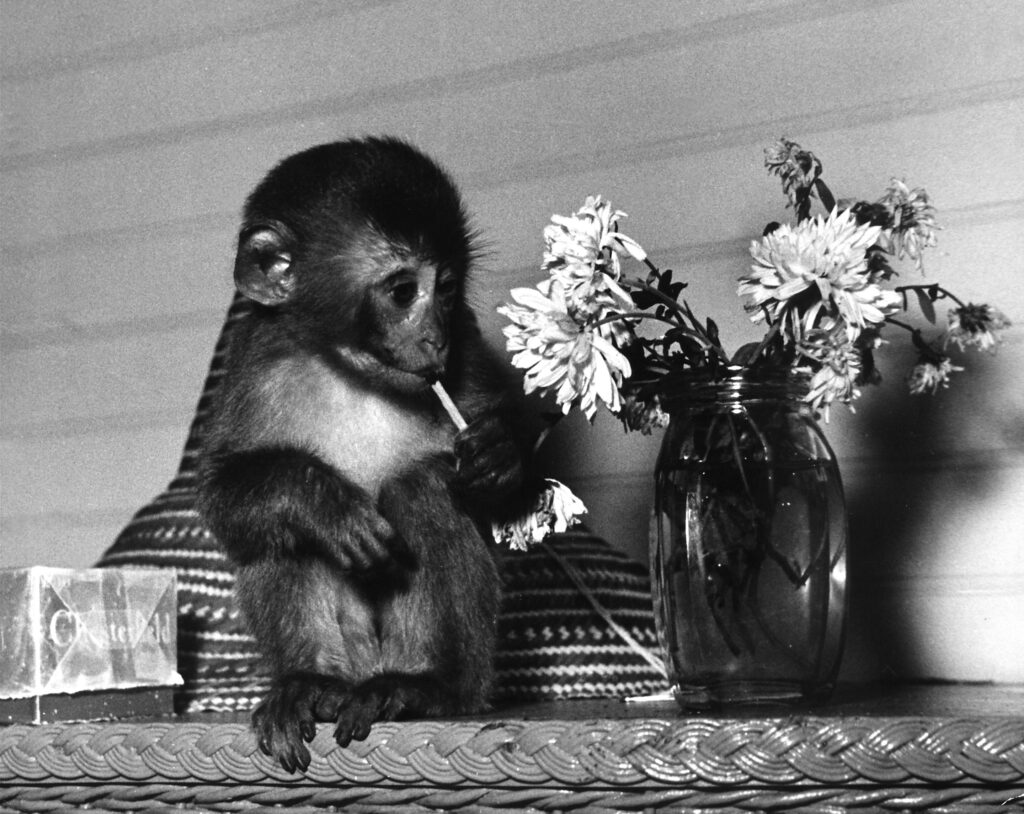 This photo, which ran at a full page in LIFE in 1939, was labelled “Rhesus: Life Size” to show readers how small the monkeys were.